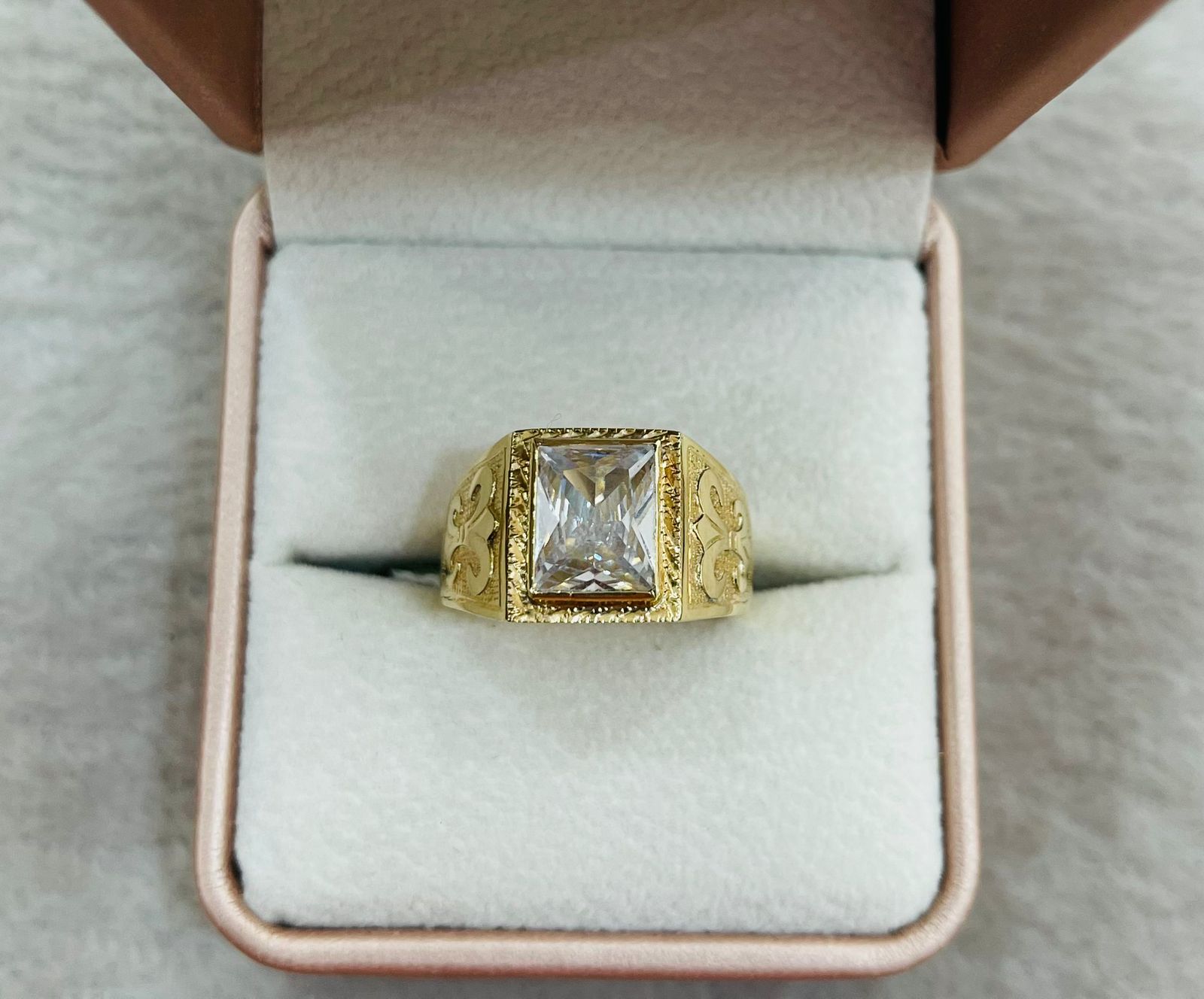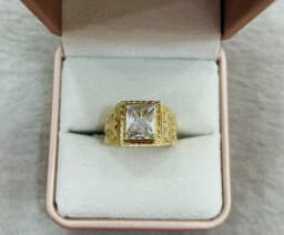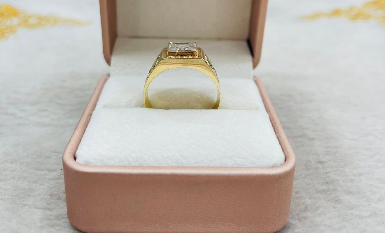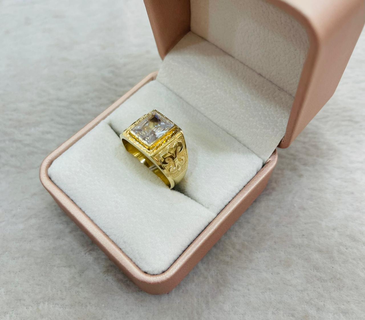 Anillo Carretón con Circón Rectangular de Oro 18k para Caballero
