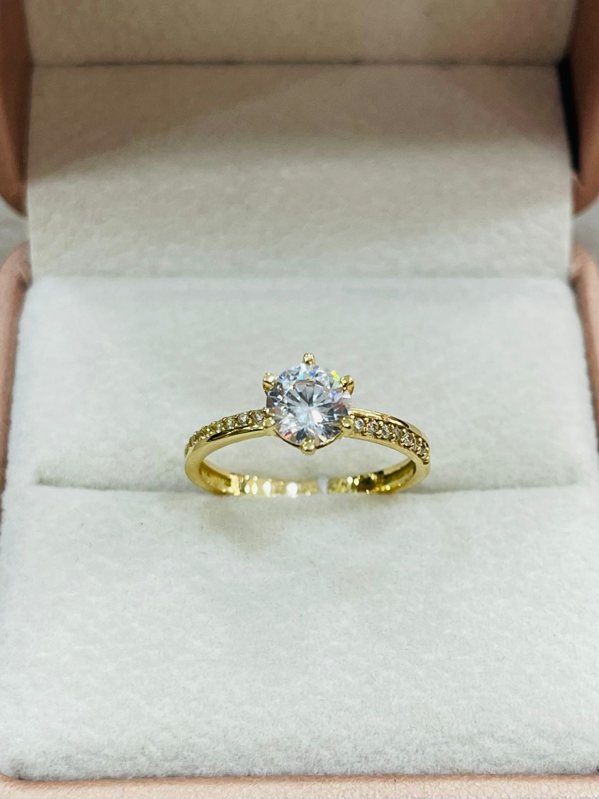 Anillo de Compromiso de Oro 18k Con Destaque de Circon Central