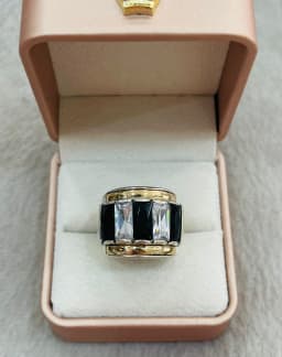 Este anillo de plata presenta un diseño elegante, adornado con una piedra rectángular de circón onix blanco y negro que destaca su riqueza y sofisticación. La mezcla de tonos oscuros y claros crea un efecto visual complejo y apasionante, ideal para aquellas que buscan un toque de estilo y elegancia en cualquier ocasión.