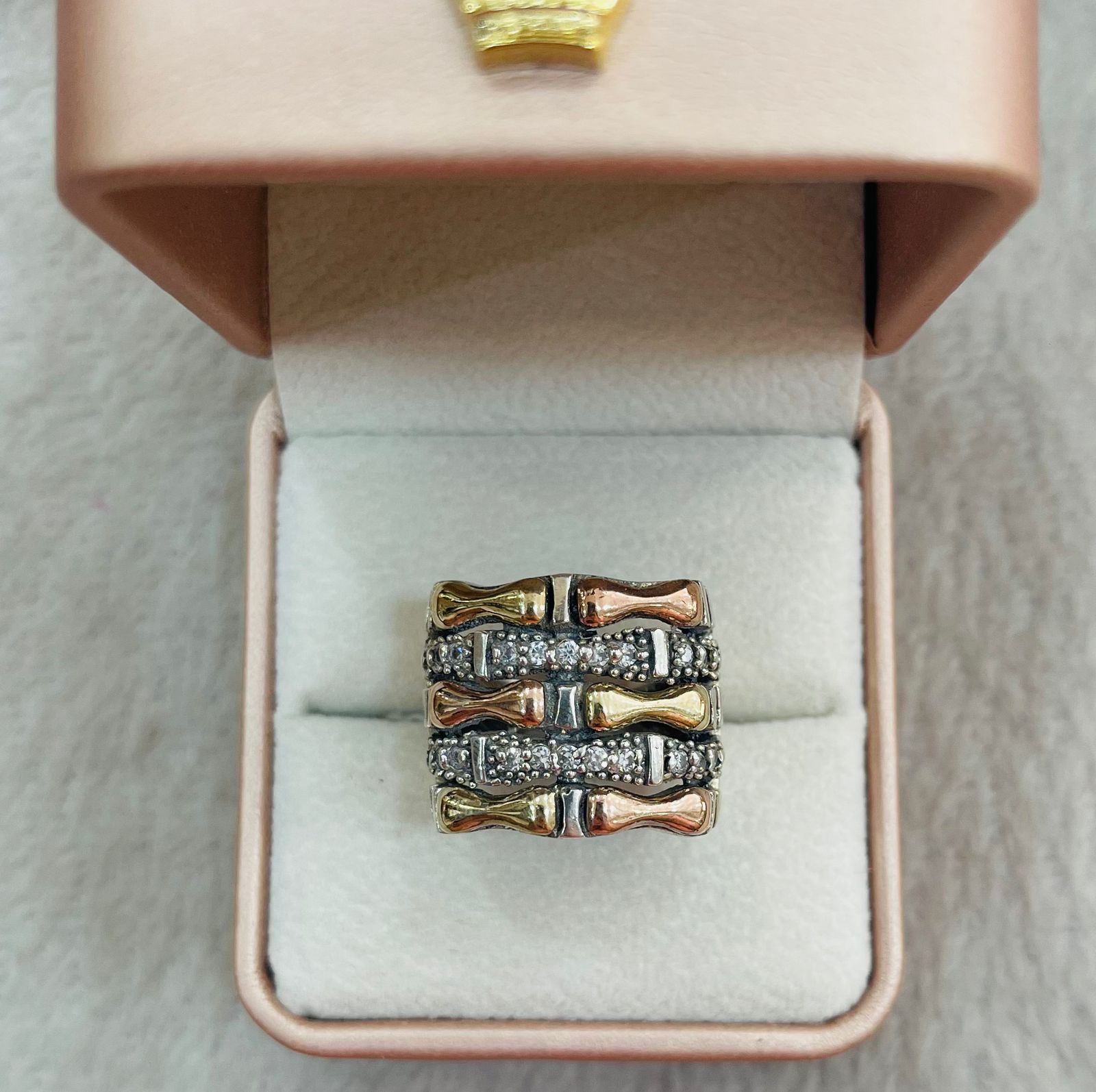 Este anillo de plata destaca por su elegante forma de huesitos, caracterizada por su delicado diseño y acabado brillante. La lámina dorada que adorna la parte superior de la pieza le aporta un toque sofisticado.