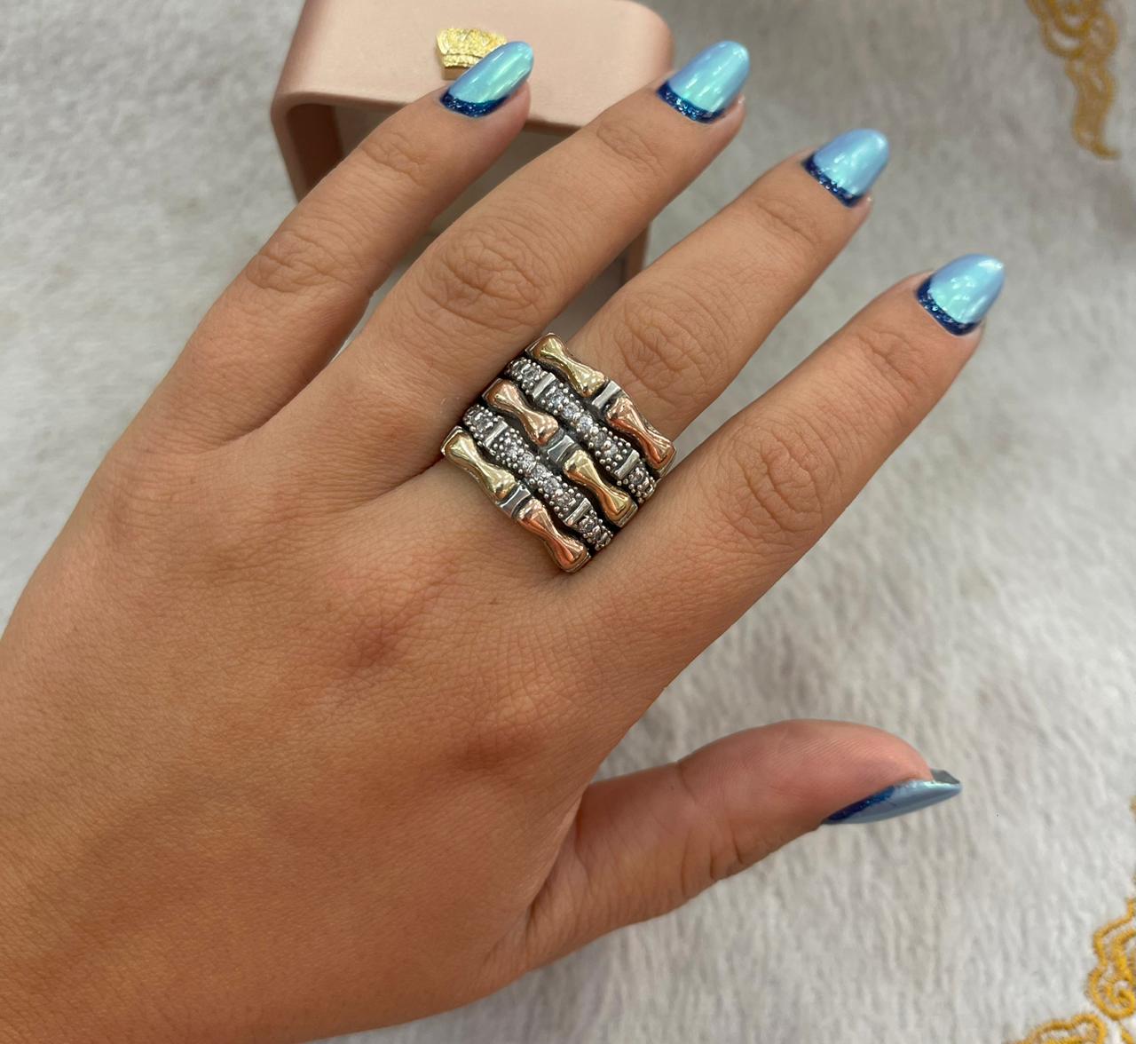 Anillo de Plata Forma Huesitos con Lámina Dorada