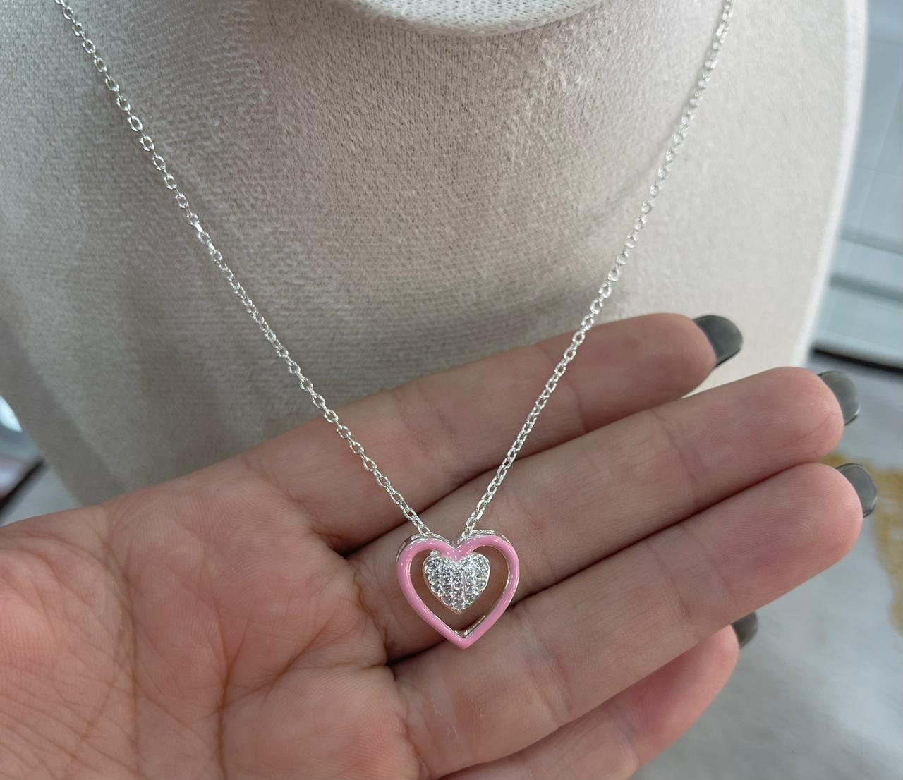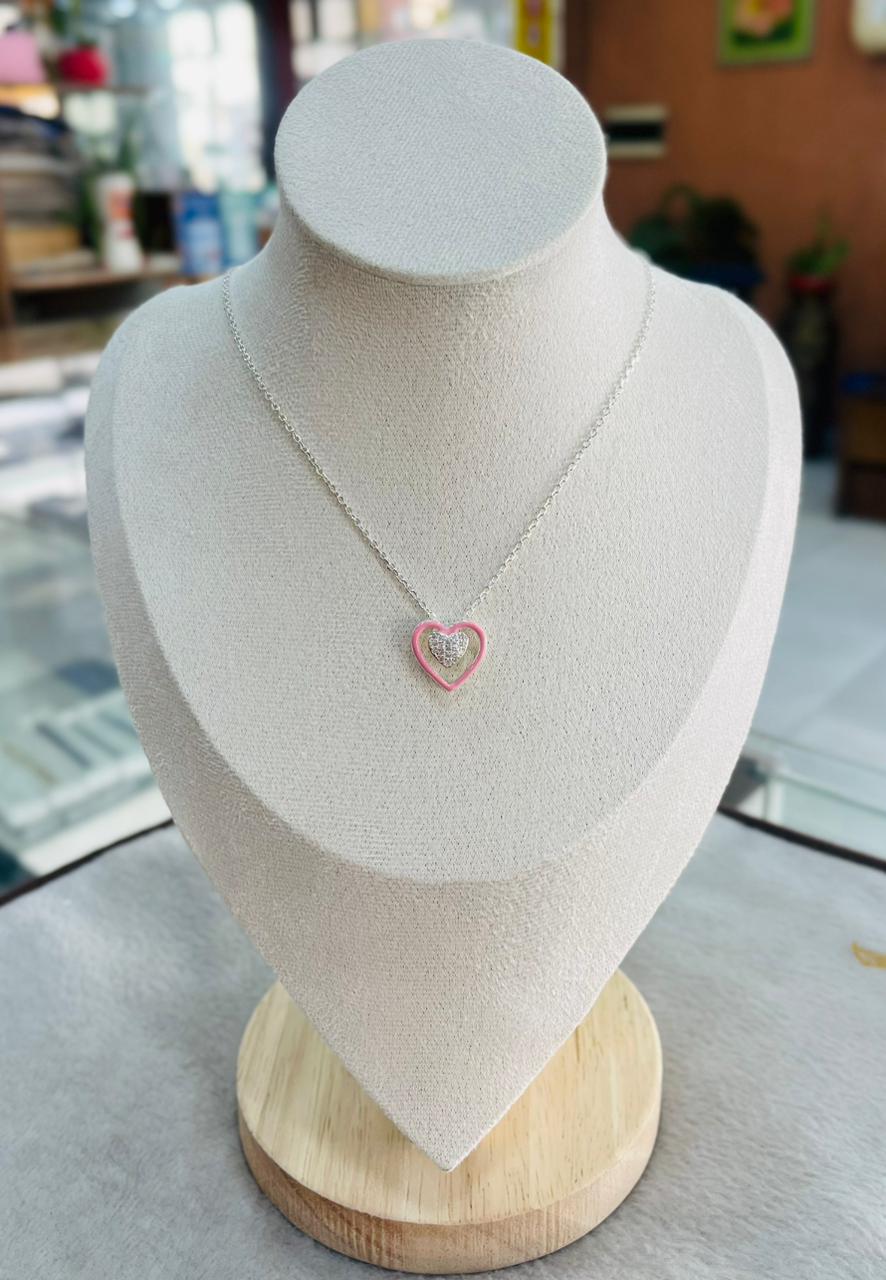 Cadena Corazón Rosado de Plata 925