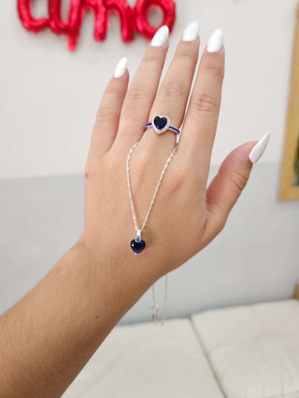 PROMO Cadena de plata con dije + romántico anillo corazon azul