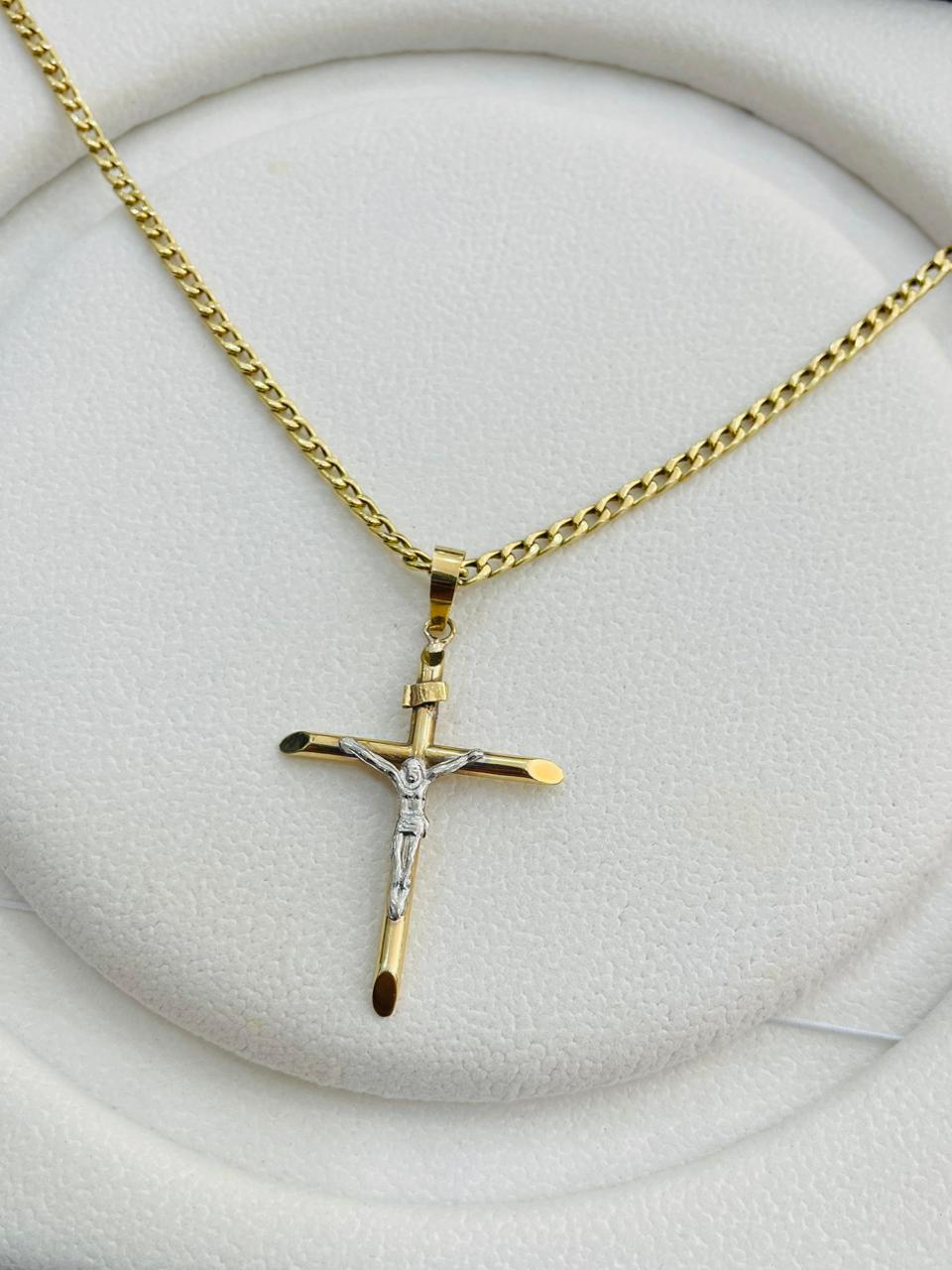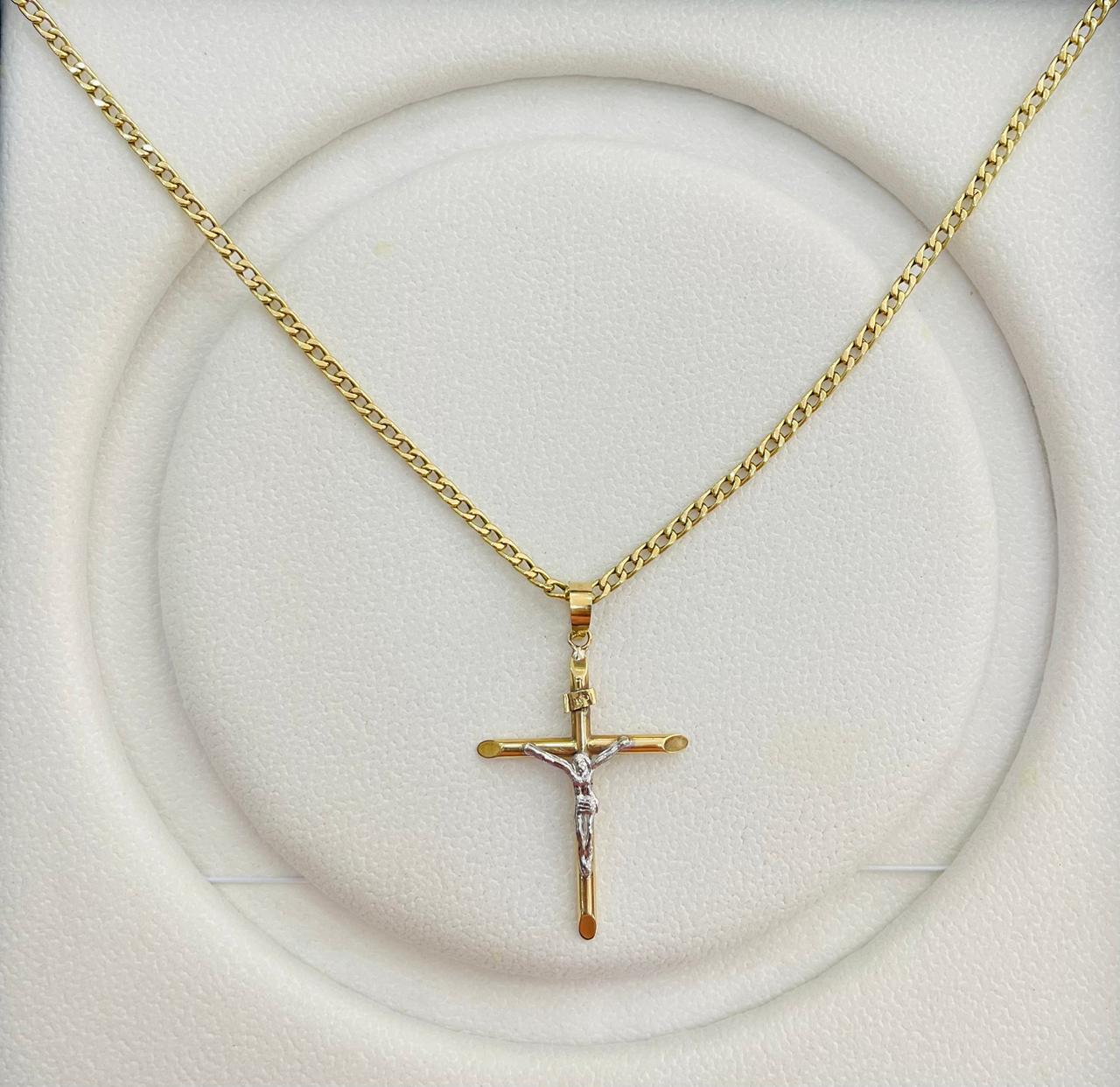 Cadena Grumet Simple de Oro 18k + Cruz Italiana Oro Blanco y Amarillo