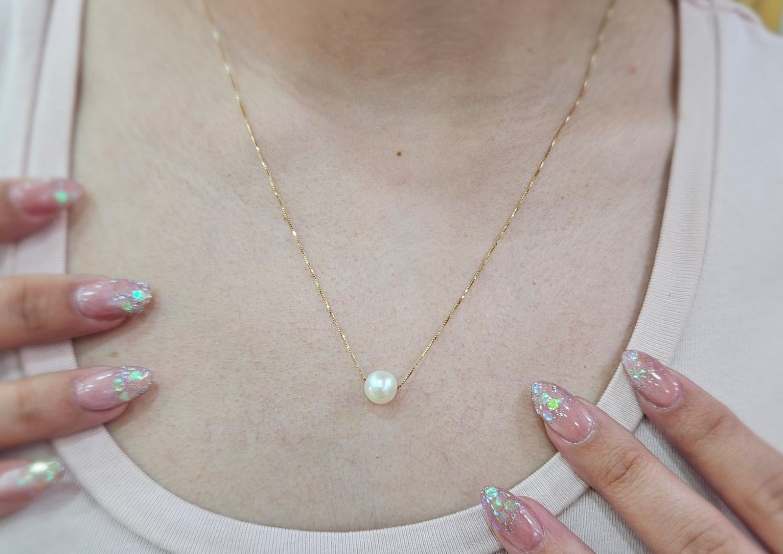Cadena Veneciana de Oro 18k con Perla de Agua Dulce