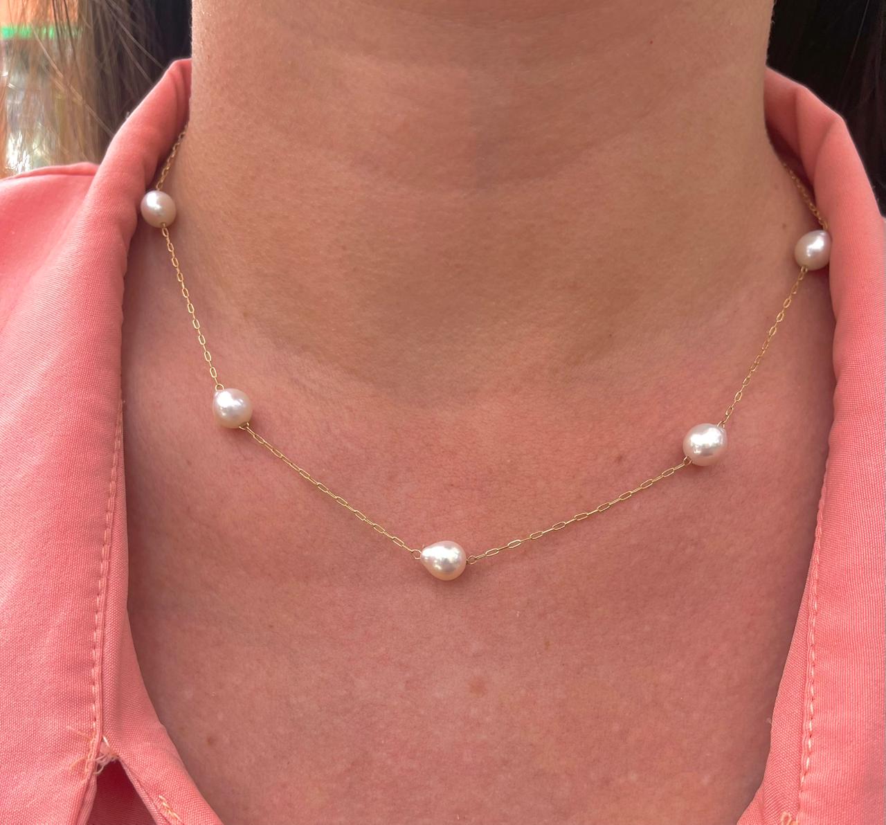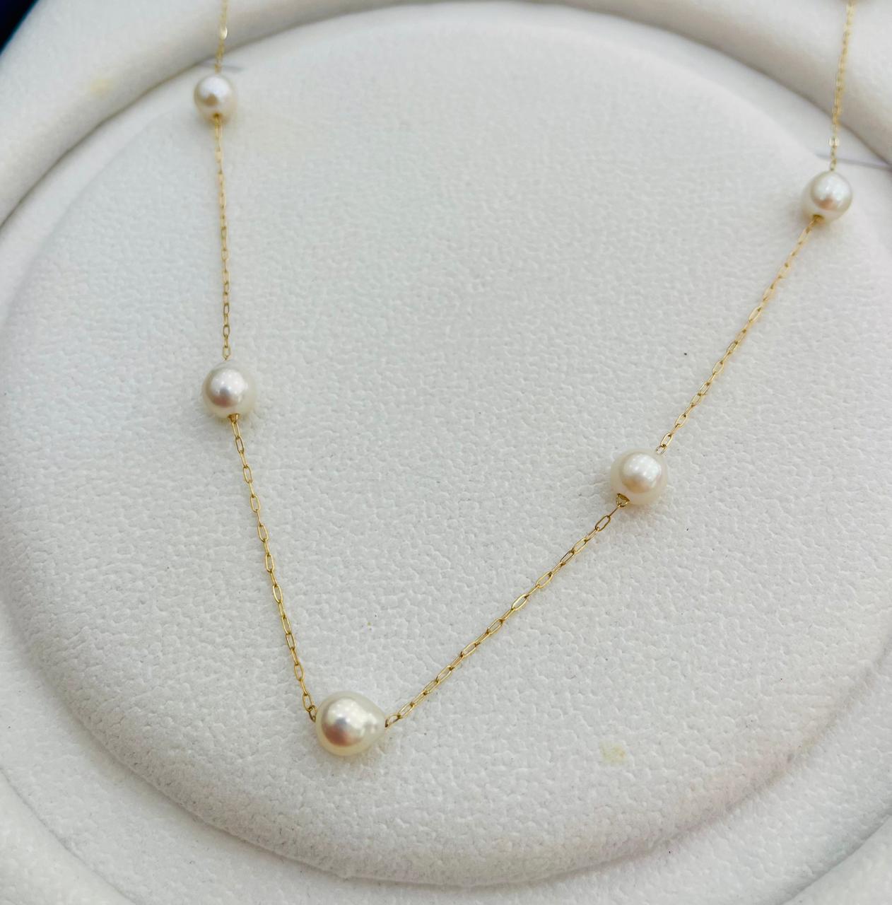 Collar de Oro 18k con Incrustación de Perlas de Agua Dulce