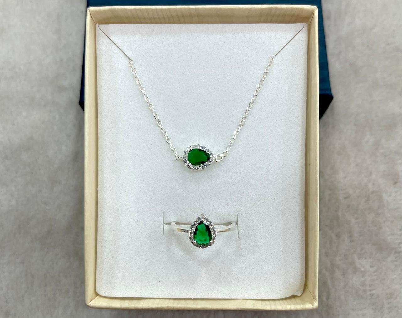 Juego de Plata con Circón Color Esmeralda