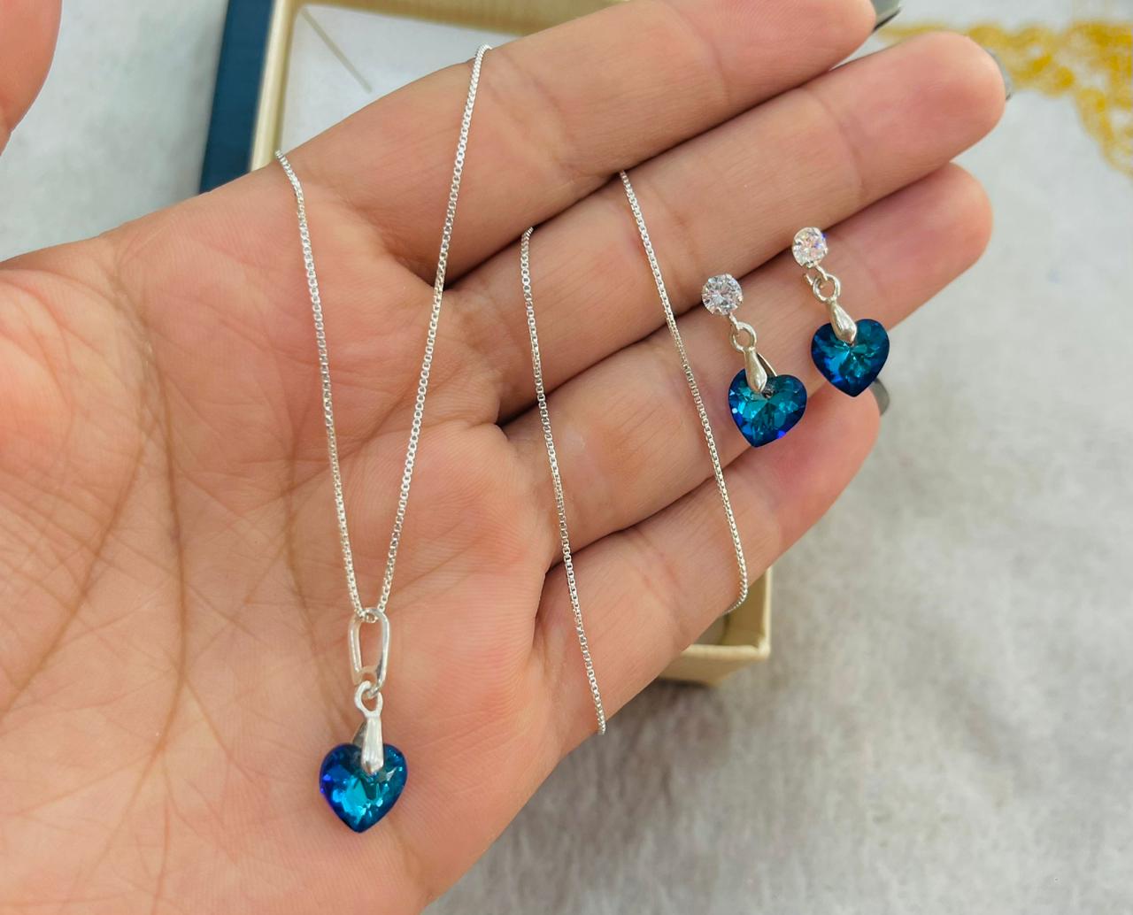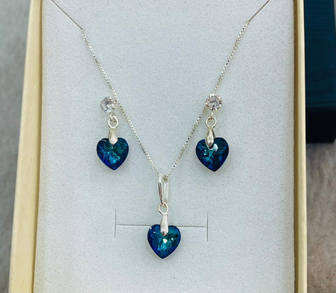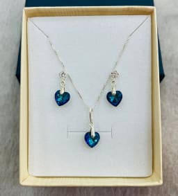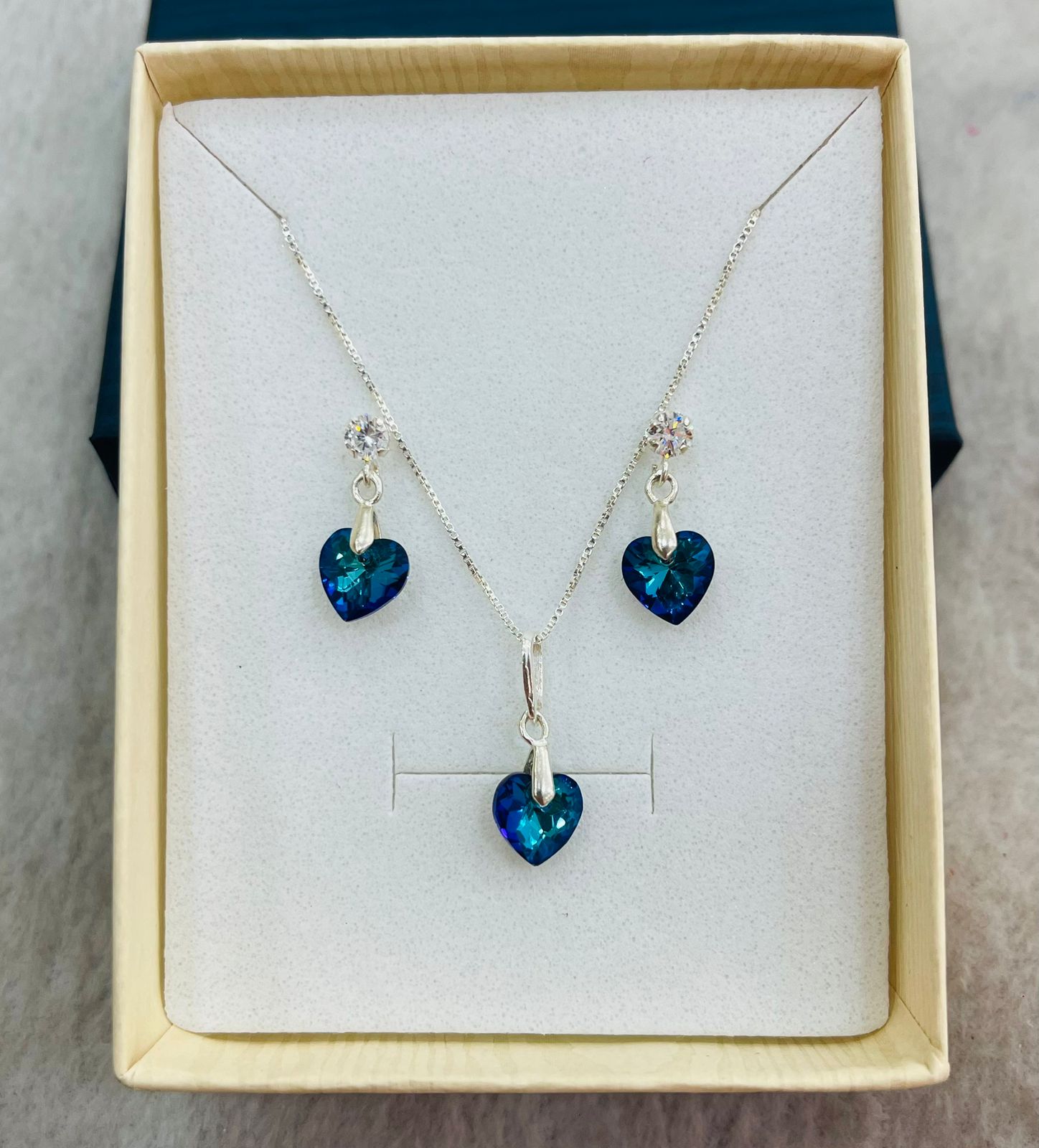Este juego de joyería en plata está adornado con un impresionante cristal corazón que recuerda al icónico Titanic. Su diseño clásico y sofisticado lo convierte en la perfecta opción para ocasiones especiales, como bodas o aniversarios. La combinación de la plata y el cristal crea un efecto de lujo y elegancia.