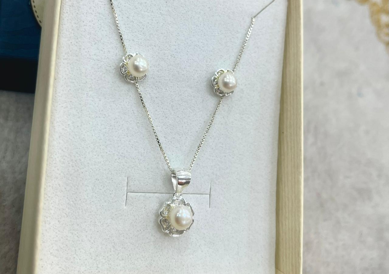 Juego de Plata Con Perla de Aguadulce