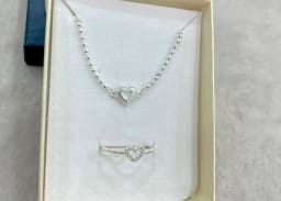 Este juego de joyas de plata blanco presenta un corazón elegante en forma de circón, perfecto para un regalo de amor o para un día especial.