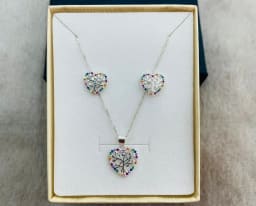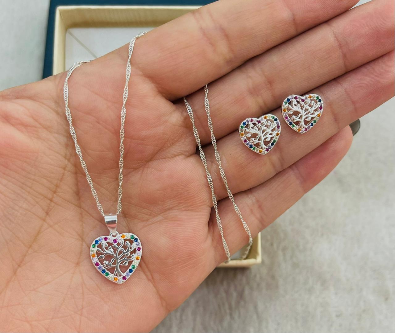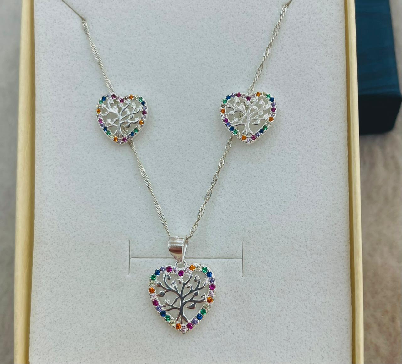 Juego de Plata Corazón Multicolor Árbol de la Vida