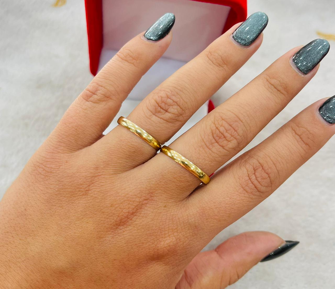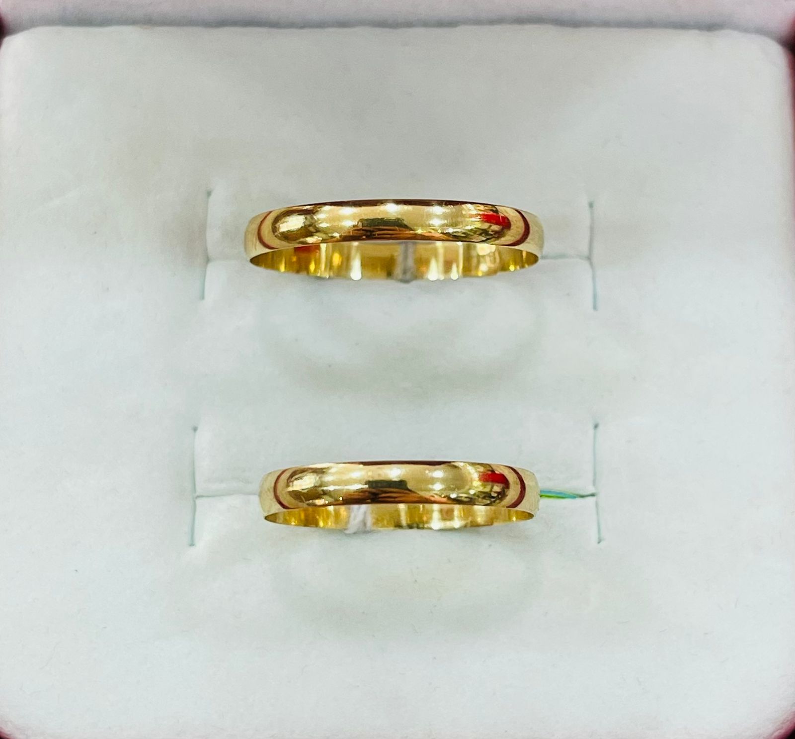 Par de alianzas lisas en Oro 18K, de diseño clásico y elegante. Ideales para simbolizar un compromiso eterno con estilo atemporal.