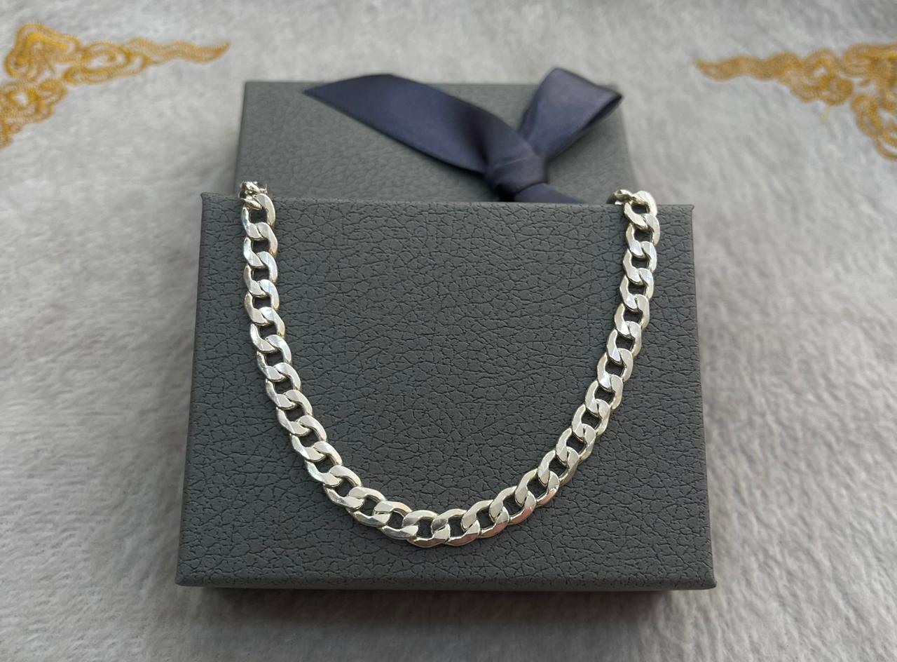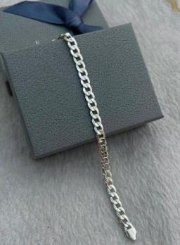 Esta pulsera de plata grumet para caballero destaca por su elegancia y sofisticación, presentando un diseño geométrico que combina perfeccionadamente con la piel oscura. Su material noble y su acabado mate le dan un toque de matices y riqueza. Ideal para un caballero que busca agregar un toque de elegancia a su atuendo formal.