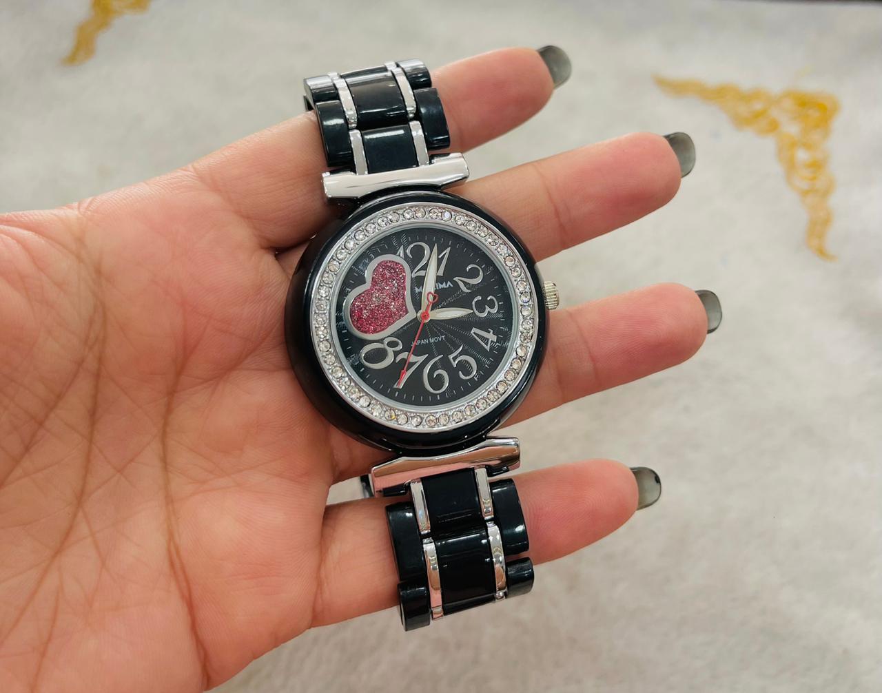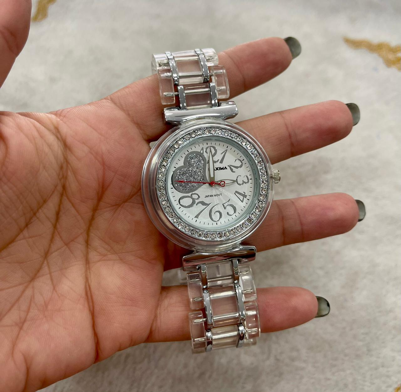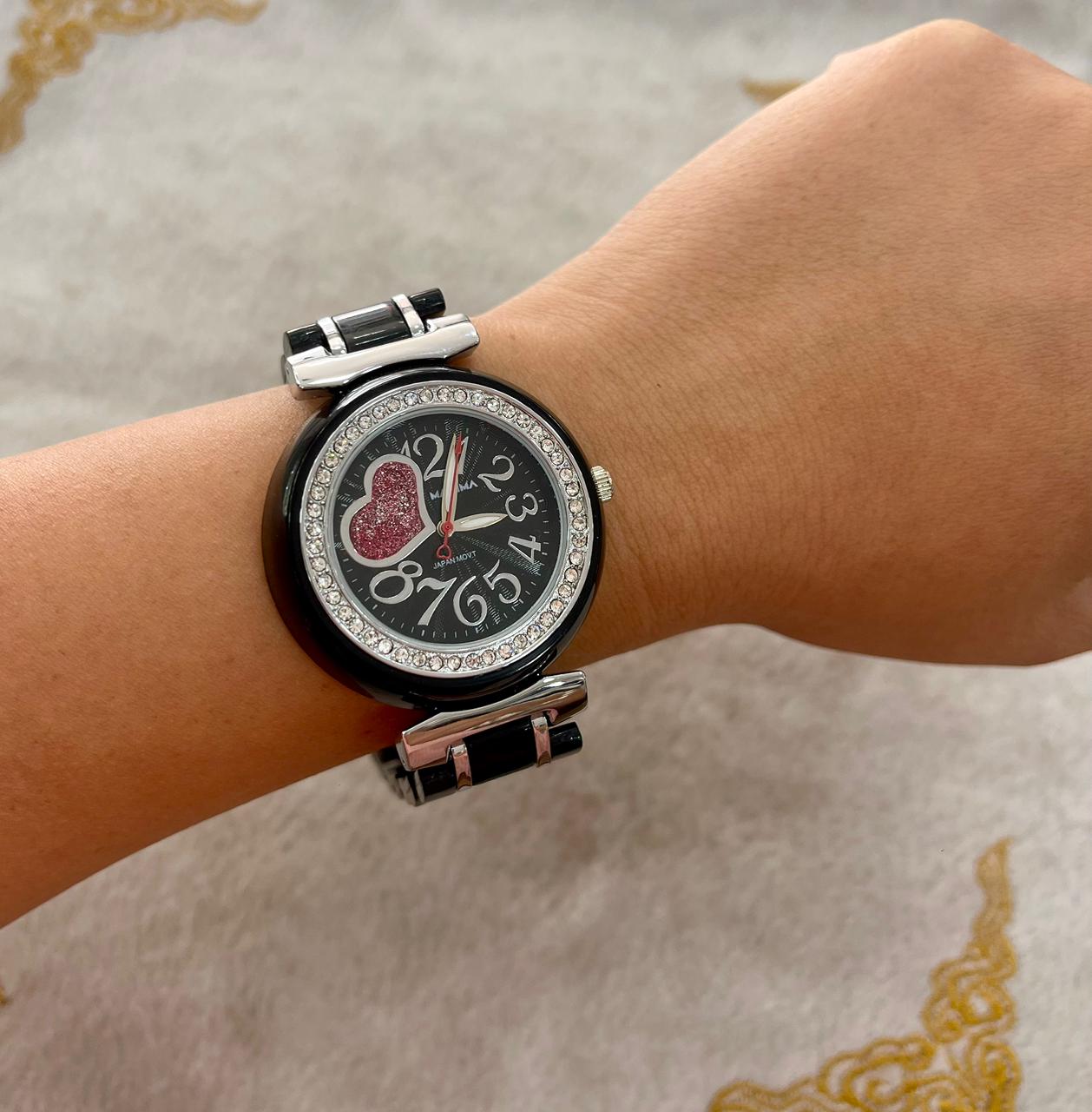 Este reloj femenino de máxima elegancia destaca por su delicada malla de acero cromada, que brilla con un toque de sofisticación. Su elegante diseño cuenta con delicados cristales alrededor de la esfera, y un romántico corazón. La calidad de su estructura metálica asegura una durabilidad y resistencia a lo largo del tiempo.